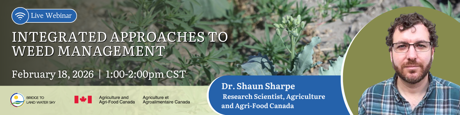 In this webinar, Shaun will discuss simple practices that can manage weeds such as scouting, crop rotations, integrating perennials, understanding weed ecology and using the right timing. By mixing management tools we can shrink the soil seedbank and ultimately kill fewer weeds over time. Shaun will share field-margin-to-field-margin perspectives and perennial considerations to better understand and manage weeds, where and when they occur and highlight successes from the Bridge to Land Water Sky project.